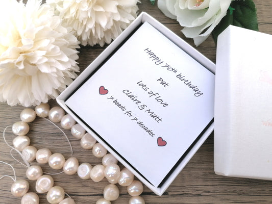 Celebrate this special milestone with our 50th birthday jewellery collection. Our 50th birthday bracelets and necklaces are handmade to order using high-quality sterling silver and gold-filled metal. They make the perfect present for a friend, daughter, Mum, sister, wife or partner. Our jewellery is a thoughtful and meaningful way to say "happy 50th birthday". All our bracelets are supplied in a beautiful jewellery box with your own personalised message. Some bracelets can be personalised even further with add-on initials, please see the individual descriptions for further details. If you would like to create your own bracelet, please send us a message. Custom orders are welcome!
