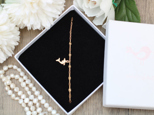 Dolphin ankle bracelet in gold-filled. Dolphin anklet.
