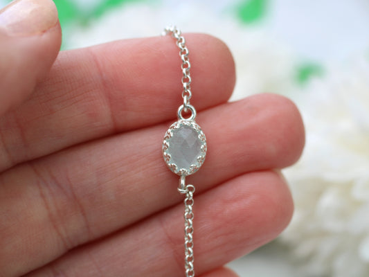 Natural aquamarine adjustable bracelet in sterling silver.