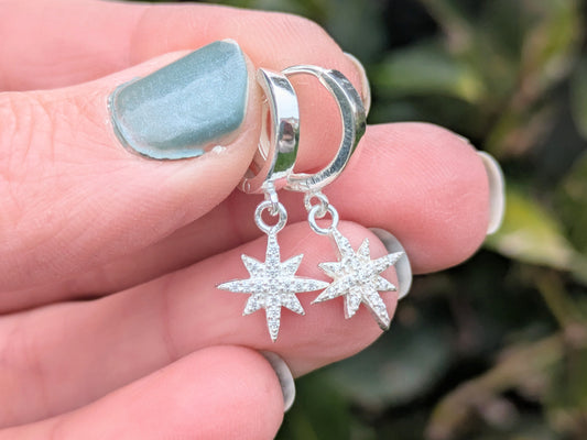 North star huggie hoop earrings.