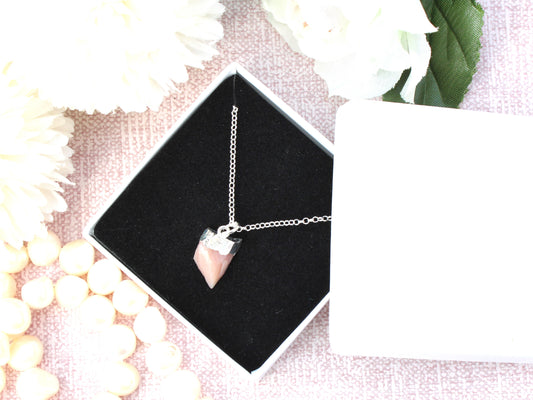 October birthstone necklace. Pink opal necklace.