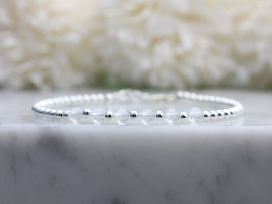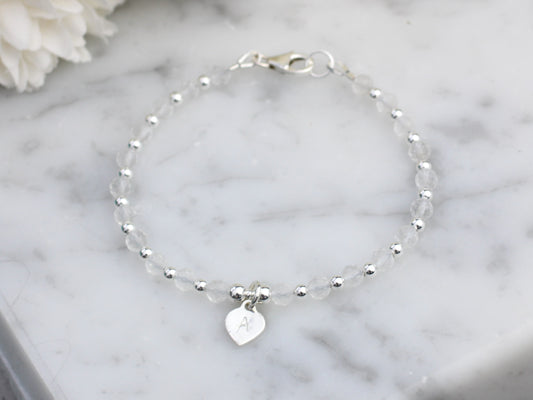 Quartz initial bracelet. April birthstone bracelet.