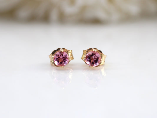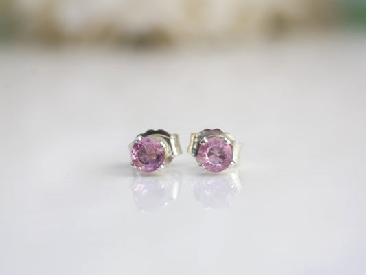 Pink tourmaline stud earrings in silver or gold.