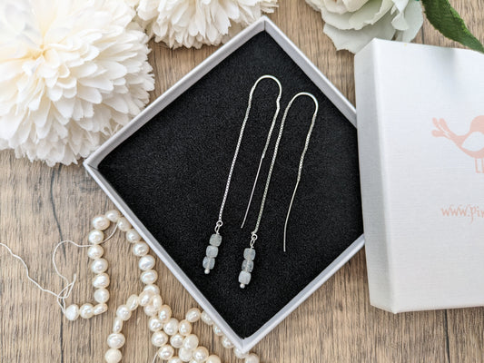 Rainbow moonstone threader earrings.