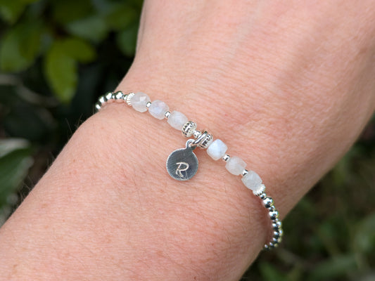 Rainbow moonstone initial bracelet.