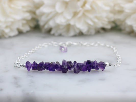 Raw amethyst adjustable bracelet in sterling silver.
