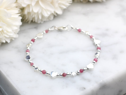 Pink tourmaline bracelet in silver.