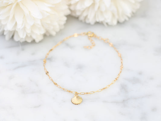 Seashell ankle bracelet in gold-filled. Seashell anklet.