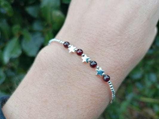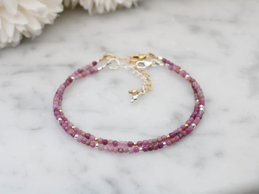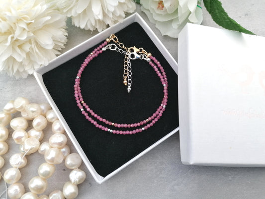 Skinny ruby bracelet in silver or gold. July birthstone.