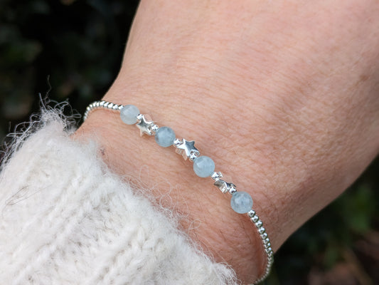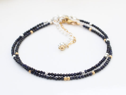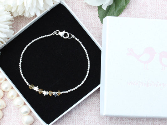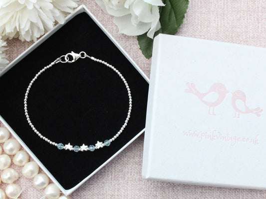 Snowflake obsidian bracelet in sterling silver with optional personalised tag - initial, number or zodiac sign.