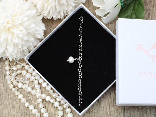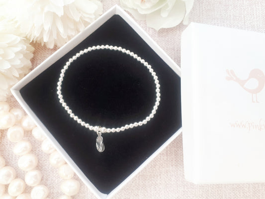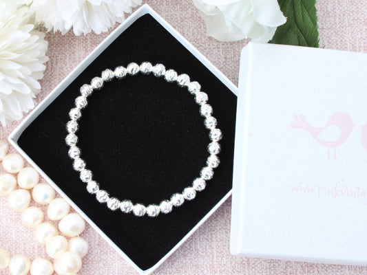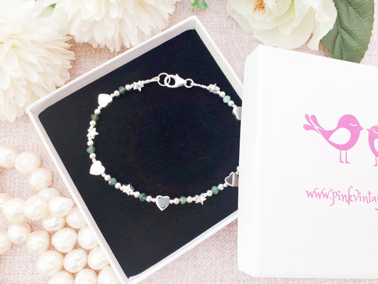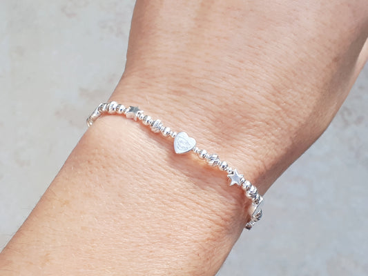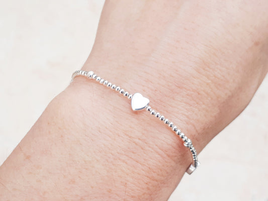 Sterling silver bead bracelet with love heart charm, can be personalised. Also available as a stretch bracelet.