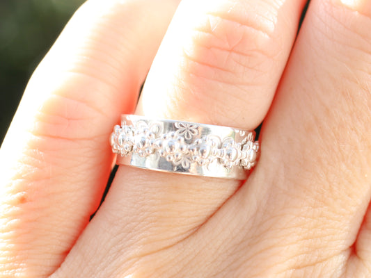 Sterling silver flower/daisy spinner ring. Fidget ring.