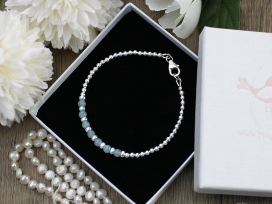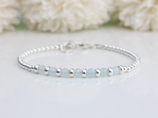 Aquamarine bracelet in silver. March birthstone bracelet.