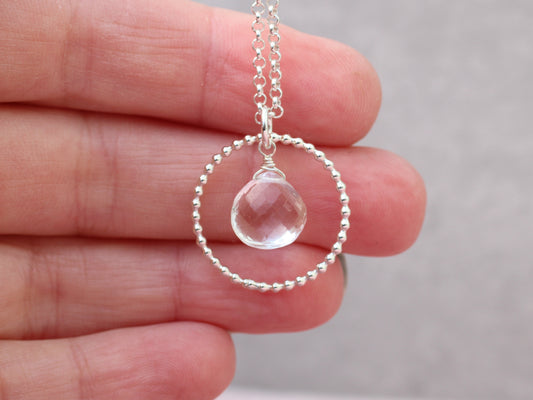 April birthstone necklace. Crystal quartz necklace.