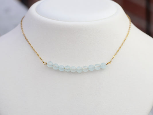 Aquamarine birthstone necklace in silver or gold.