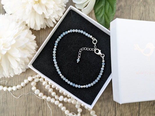 Aquamarine ankle bracelet, aquamarine anklet.