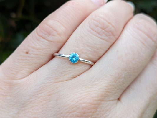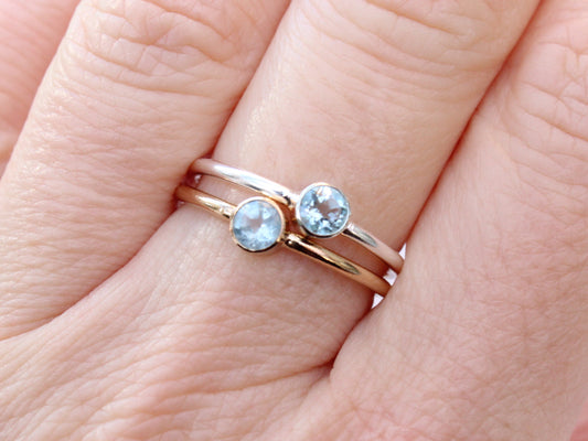 Aquamarine birthstone ring in silver or gold.
