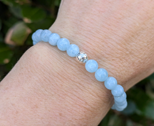 Aquamarine bead bracelet. March birthstone.