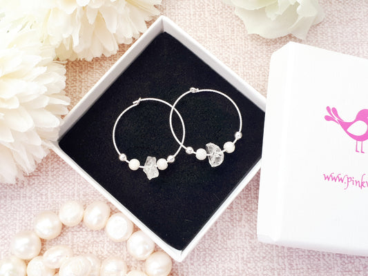 April birthstone earrings. Quartz hoop earrings.