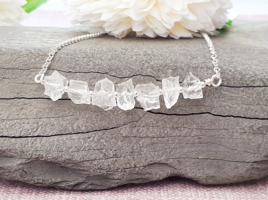 April birthstone necklace. Quartz necklace in silver.