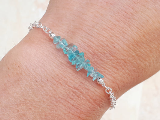 Apatite adjustable bracelet in sterling silver.