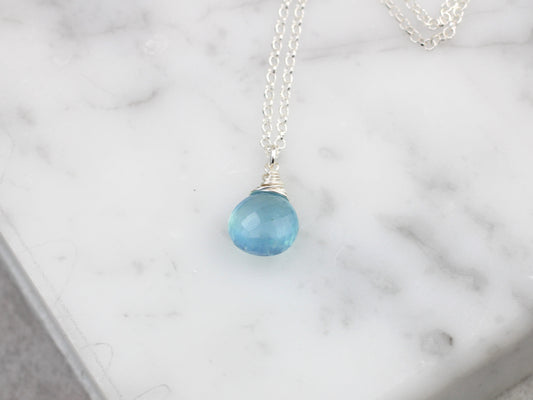 Aquamarine drop necklace in silver or gold.