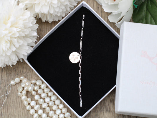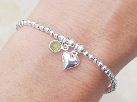 August birthstone bracelet in silver.