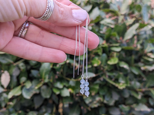 Aquamarine threader earrings in sterling silver.