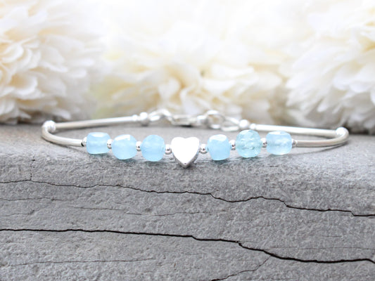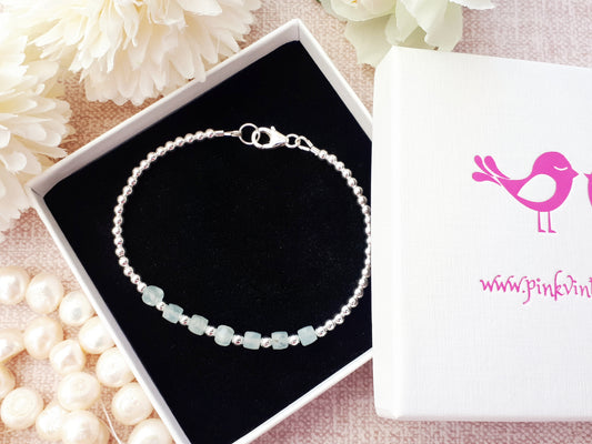 Aquamarine milestone bracelet in sterling silver.