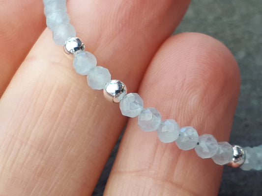 Aquamarine bracelet in sterling silver. March birthstone.