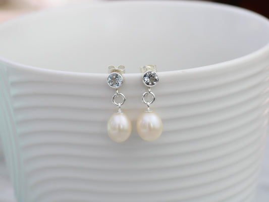 Blue topaz and pearl drop earrings.
