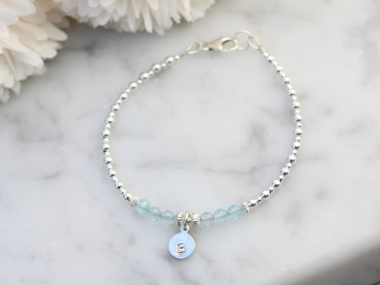 Blue topaz initial bracelet. November birthstone.