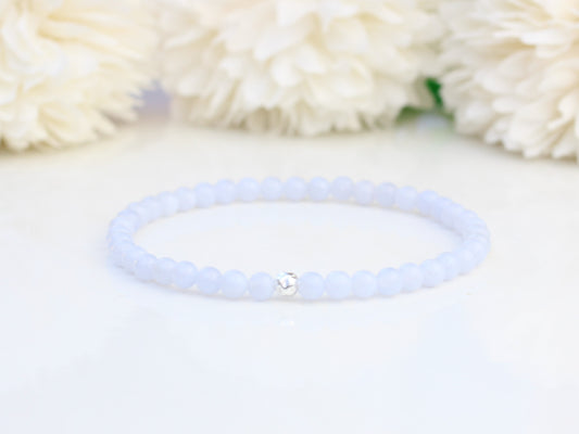Blue lace agate stretch bracelet with sterling silver accent bead.