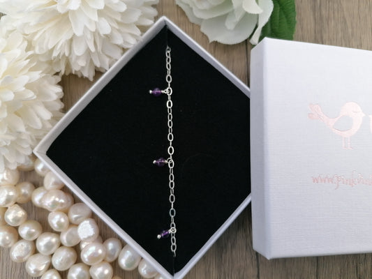 Birthstone anklet in sterling silver.