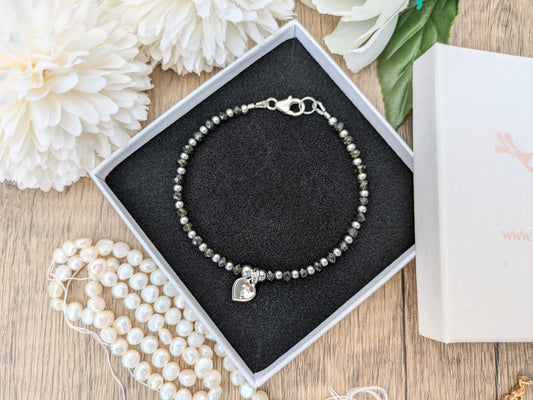 Black tourmaline milestone bracelet in sterling silver.