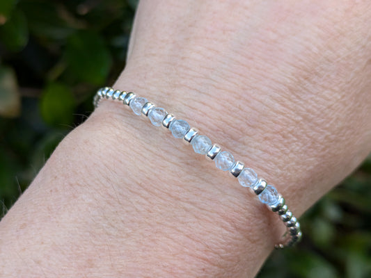 Blue topaz milestone bracelet in silver.