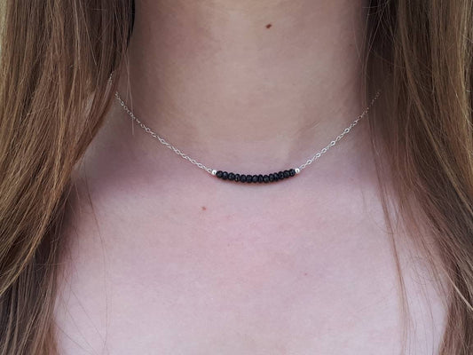 Black tourmaline necklace. October birthstone.