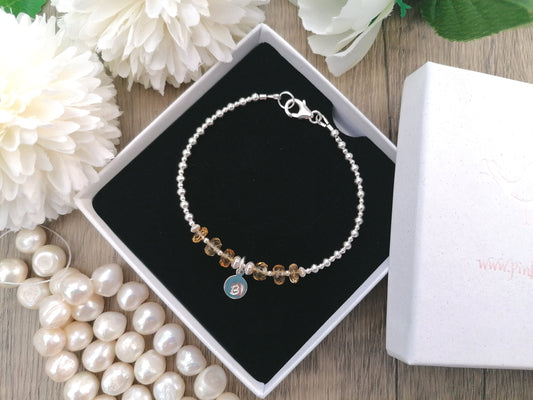 Citrine initial bracelet. November birthstone bracelet.