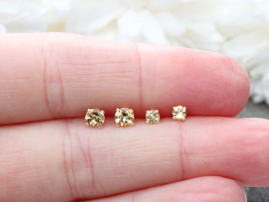 Citrine stud earrings in sterling silver or gold.