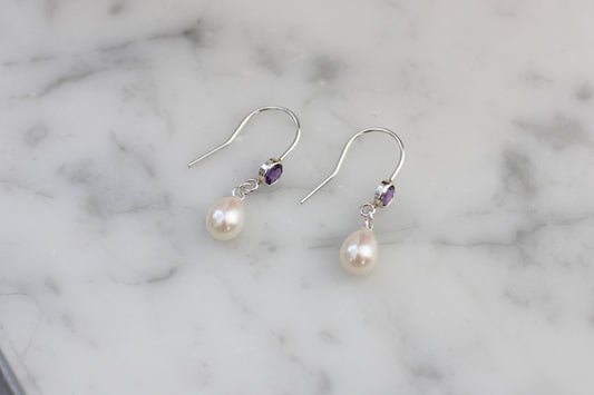 Amethyst and pearl drop earrings.