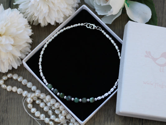 Emerald anklet in sterling silver. May birthstone gift.