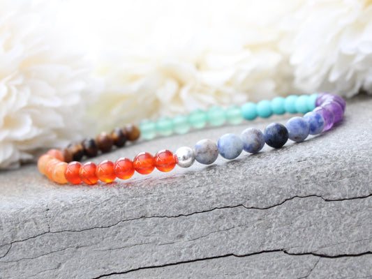 Our Chakra Jewellery Collection is designed to bring harmony, balance, and beauty into everyday life. Each bracelet or necklace in this collection is thoughtfully crafted with gemstones that correspond to the body’s seven chakras, helping to align energy centers and inspire a sense of inner peace. From vibrant bracelets to delicate necklaces, these pieces offer both spiritual significance and timeless style, making them perfect for meditation, personal growth, or simply as a reminder of one’s journey. All our gemstones are sourced here in the UK from ethical suppliers.