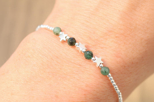 Emerald Dainty Bracelet – May Birthstone Gemstone Bracelet with Sterling Silver Stars and Personalisation