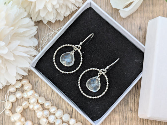 Crystal Quartz Earrings – April Birthstone Sterling Silver Drop Earrings