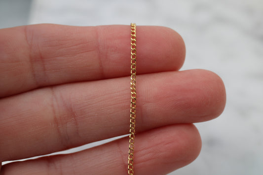 The collection includes a range of styles, from ultra-dainty cable chains to more defined curb and flat cable designs, as well as textured options such as rolo and satellite chains with subtle detailing. Each piece is crafted using either 14k gold-filled or solid 9ct gold, offering options for both everyday wear and fine jewellery preferences.