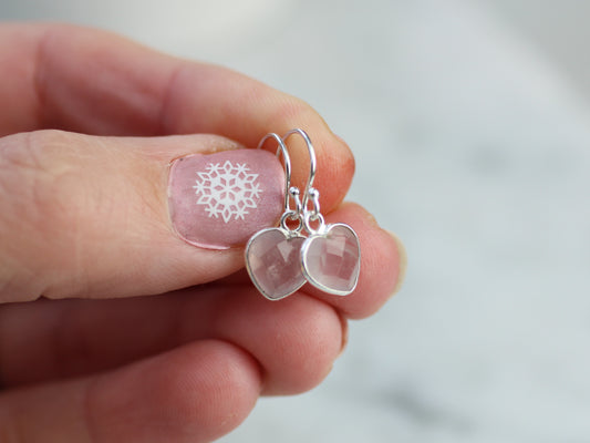 Rose Quartz Heart Earrings in Sterling Silver | Faceted Pink Gemstone Drop Earrings | Gift for Her