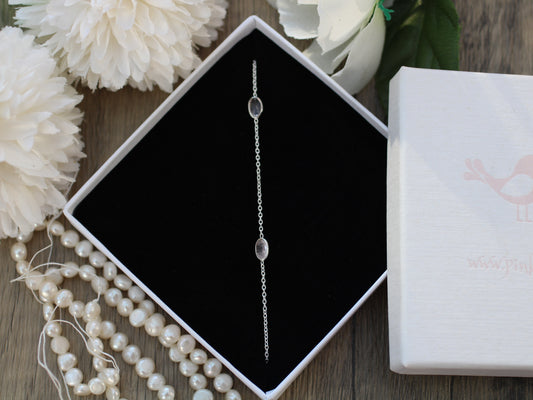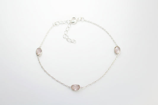 Rose Quartz Anklet in Sterling Silver | Dainty Pink Gemstone | Gift for Her