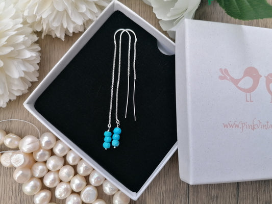 Turquoise threader earrings. December birthstone earrings.