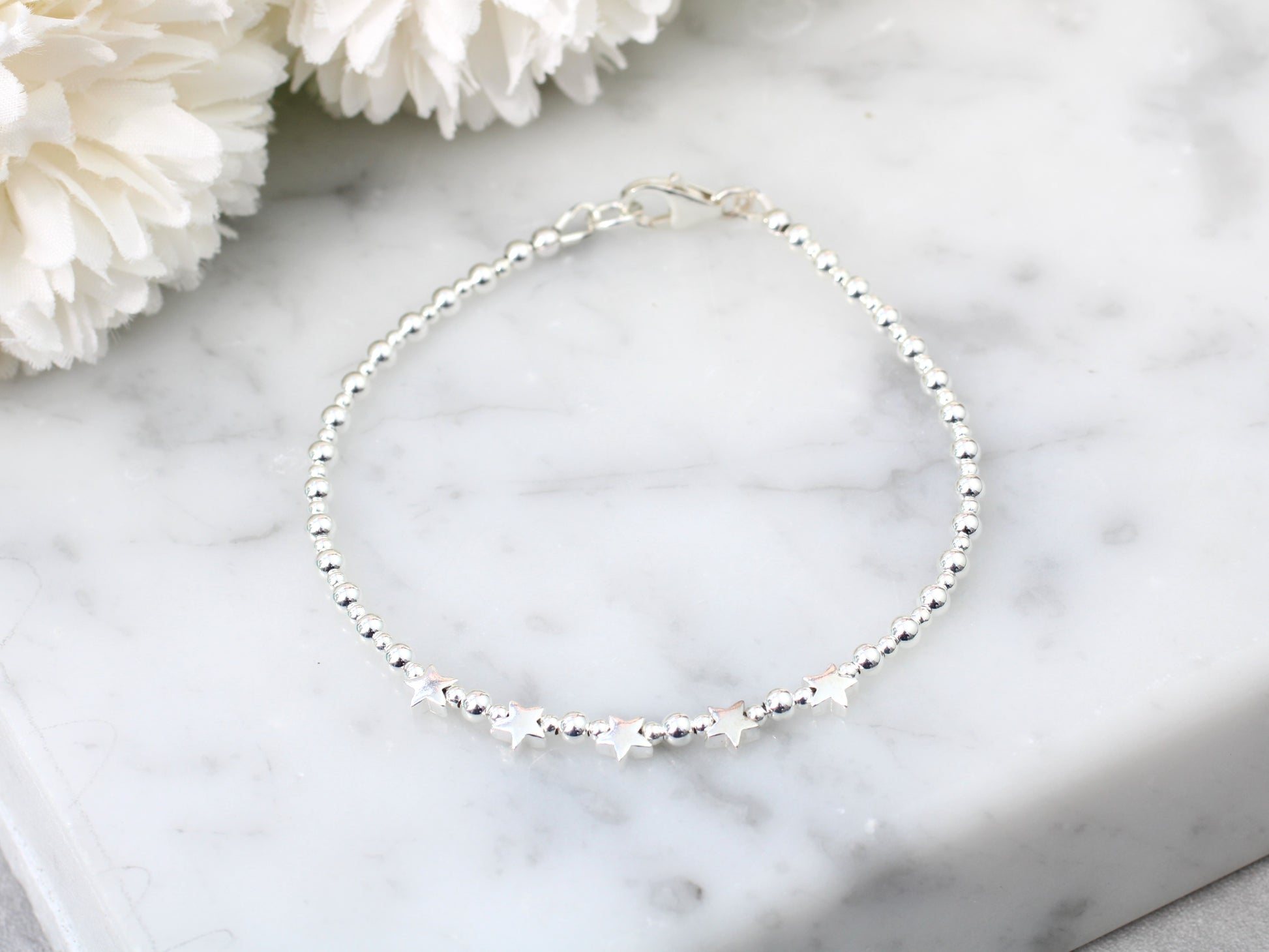 Celebrate the milestone 50th birthday with our handmade sterling silver bead bracelet. Each sterling silver star represents a decade, making it a thoughtful and personalized gift. Perfect for someone reaching this important milestone.