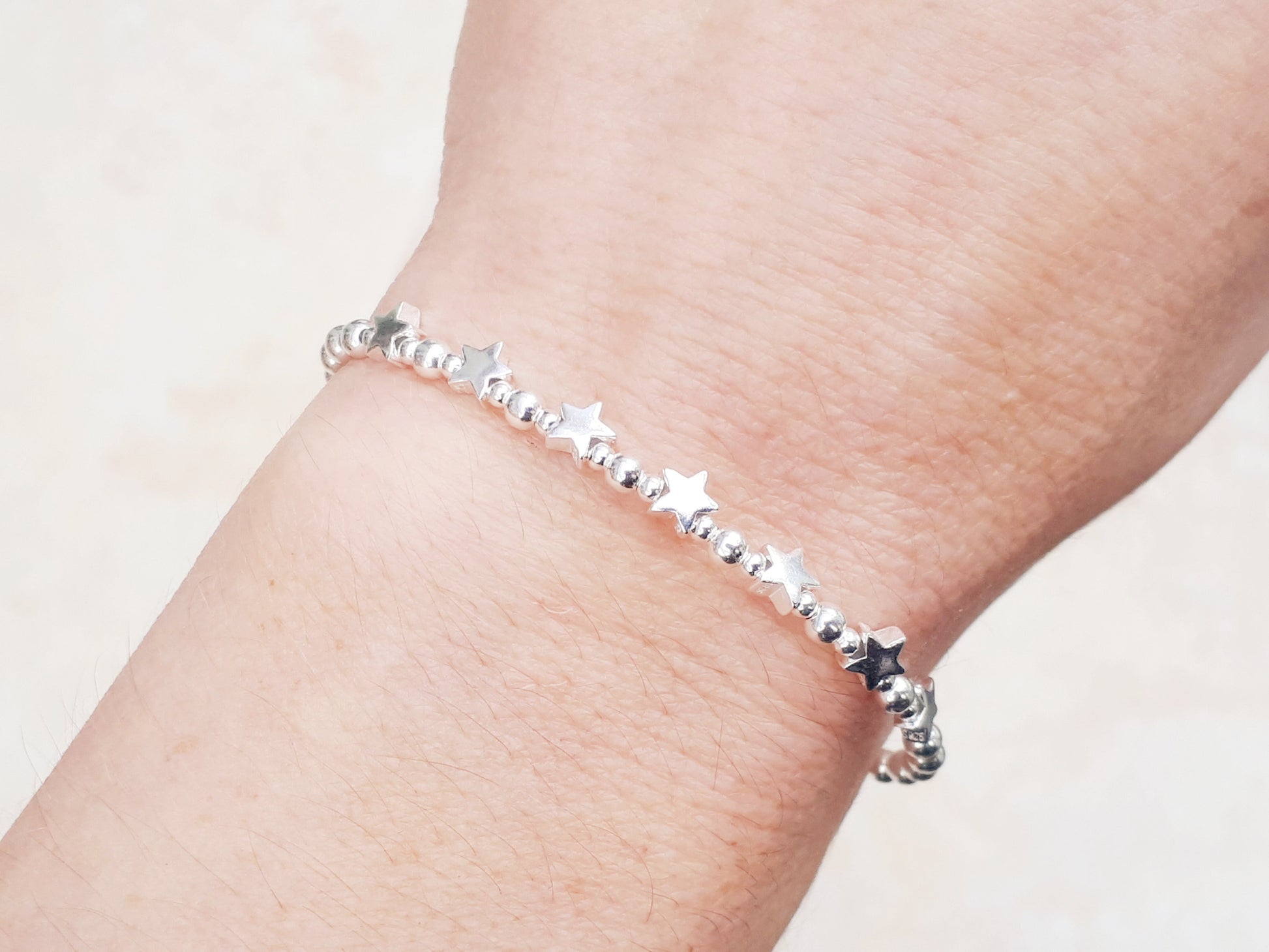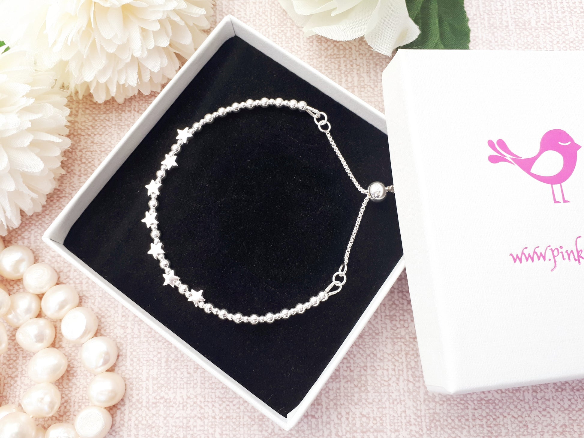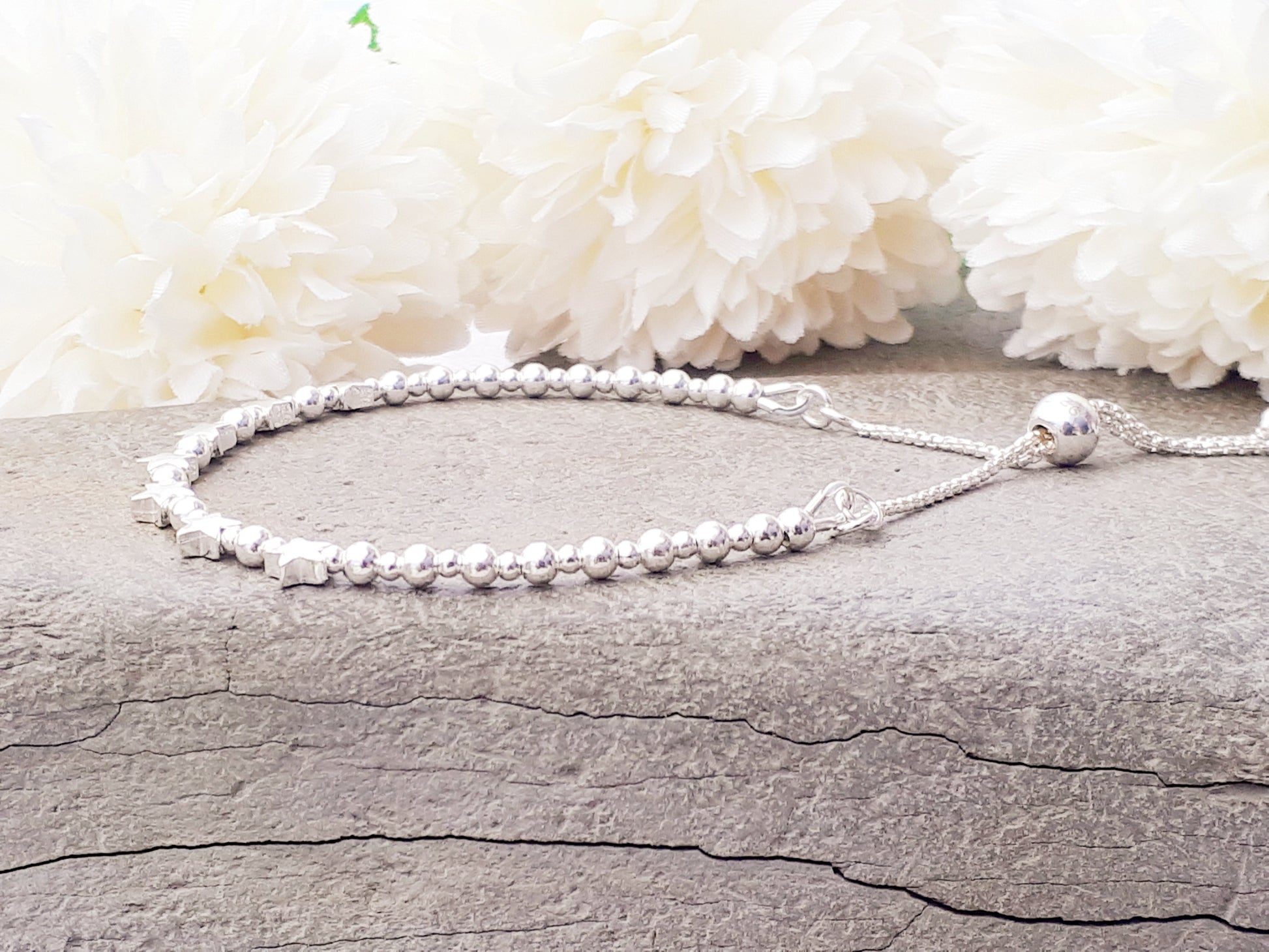 70th birthday bracelet. 70th birthday gift. Sterling silver star bracelet with slider clasp.